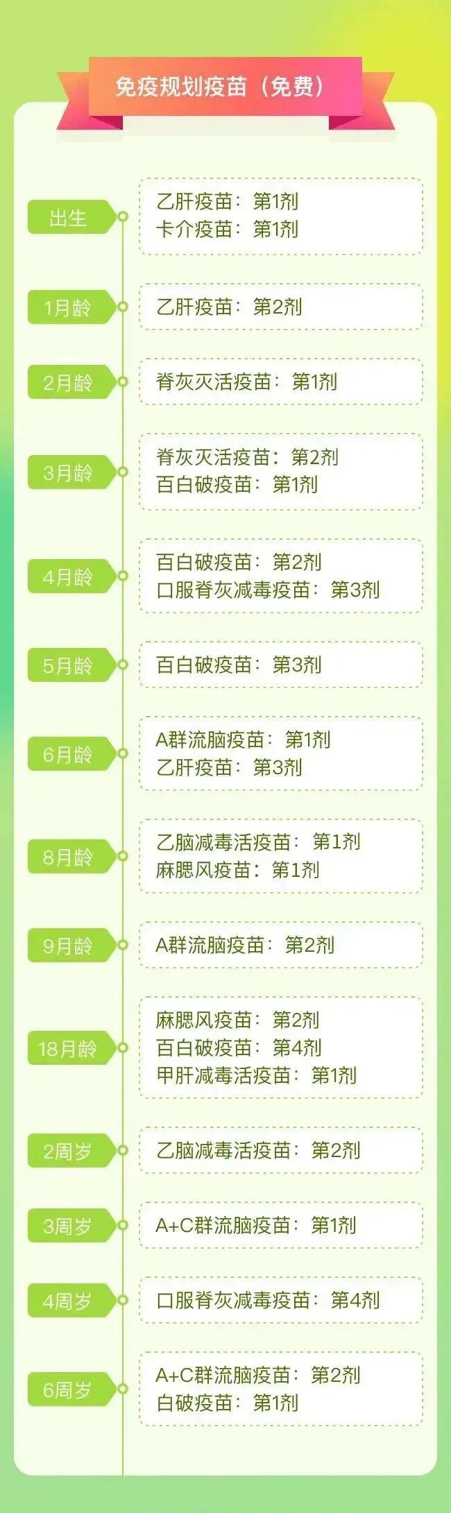儿童为什么要进行预防接种? 宝宝出生后从妈妈体内获得了一定的免疫力(母传抗体),但随着宝宝的成长,在出生6个月后母传抗体逐渐减弱消失,而此时宝宝的免疫系统发育仍未成熟,孩子容易受到各种传染病的侵害。 在外界环境中,容易收到各种细菌病毒的感染,且婴幼儿的各器官功能发育尚不完善,抵抗疾病的额能力较弱。接种疫苗之后可以使儿童体内产生抵抗相应疾病的抗体,增强免疫力,从而达到预防疾病的目的。 免疫规划疫苗和非免疫规划类疫苗有什么不同? 免疫规划疫苗:又称免费疫苗。是国家规定纳入免疫规划的疫苗,婴幼儿出生后必须进行接种,接种一类疫苗使免费的。一类疫苗包括卡介苗、乙肝疫苗、脊髓灰质炎疫苗、百白破三联疫苗、麻疹疫苗、乙脑疫苗、流脑疫苗、甲肝等疫苗。 非免疫规划疫苗:又称自费疫苗。是指由公民自费并且自愿接种的疫苗。 什么情况下暂缓接种疫苗? 1、接种部位有严重皮炎、湿疹及化脓性皮肤病的儿童,应在治愈后再接种。 2、体温超过37.5℃的发热儿童,因为发热是很多急性疾病的早期症状,所以应等病愈后再接种。 3、有严重心脏病、肝脏病、肾脏病、结核病的儿童,体质较弱接种后有激发感染的风险,暂缓接种。 4、神经系统疾病,如癫痫等,也暂缓接种。 5、重度营养不良、严重佝偻病、先天性免疫缺陷的儿童暂缓接种。 6、腹泻儿童,不宜接种,应等疾病痊愈后接种。 接种疫苗有什么注意事项? 接种前的准备工作: (1)接种疫苗前家长要观察宝宝的身体状况,如果有疾病或是明显不适如发热、咳嗽、腹泻等,及时跟医生反馈可以选择性延期接种。 (2)接种当天仔细阅读相关疫苗的“知情同意书”。 (3)尽量不要空腹接种疫苗。 接种后注意事项: (1)接种完疫苗需留观30分钟,观察期间尽量不要进食,观察有无急性过敏反应。离开前还应检查接种部位有无渗血,局部有无红肿。 (2)如口服脊灰疫苗或轮状病毒疫苗前后半小时内尽量不要吃东西。 接种疫苗绝对不可以提前,如遇特殊情况可以适当推迟延后。如需要同时接种两种以上国家计划免疫疫苗,应尽量选择不同部位。 接种后可能出现哪些反应? 疫苗属于外来物质,疫苗注射进入体内,可能会出现一定的反应,如局部的红、肿、热、痛或发热,一般无需处理,只需要适当休息,多喝水,保暖,防止继发其他疾病即可。如果存在较重的全身反应,可采取对症处理,高热不退或伴有一起并发症的,及时就医。 儿童疫苗接种时间建议 儿童疫苗接种常见8个问题 Q1:推迟打疫苗会影响孩子健康? A1:推迟接种疫苗只是推迟了接种疫苗产生保护效果的时间,而不会影响疫苗整体的、长久的保护效果(抗体水平和持久性)。但还是建议家长们按时带孩子前往接种点进行接种。 Q2:孩子生病了,能接种疫苗吗? A2:疫苗接种有绝对禁忌症和相对禁忌症,如果孩子存在出现下面几种情况,很多疫苗都不能打了,比如未控制的癫痫、脑病、进行性神经系统疾病,急性传染病患病期间或慢性传染病急性发作期间,有严重心、肝、肾疾病者,过敏体质等是不能打疫苗的。 还有一些情况是相对禁忌症,不是不能打,而是需要往后延缓,比如一些急性病发作期间,如感冒、发烧或者腹泻期间,严重的湿疹等,在治疗期间也不要着急打疫苗,等这些病好了以后才可以接种。 孩子有病家长一定要和医生做沟通,看这个孩子是属于绝对还是相对禁忌症或者有没有其他可以替代的疫苗。 Q3:不同疫苗可以同时接种吗? A3:在到达最早接种年龄后,多种疫苗可以同时接种,只要不在同一部位接种即可。具体安排请遵当地规范及医生医嘱。 Q4:减活疫苗 or 灭活疫苗怎么选? A4:二者的保护效果和安全性没有本质差异。因工艺、储存、运输等特点不同而价格不同。 如果孩子因疾病或者用药的缘故,只能接种某种工艺的疫苗(如灭活疫苗),不论免费自费,都应当选择接种。 Q5:联合疫苗 or 单独疫苗怎么选? A5:推荐尽可能选择接种联合疫苗,减少孩子接种的总剂次,减少皮肉之苦。 但如果联合疫苗缺货,不必无尽等待,应当及时使用单独疫苗完成接种。 Q6:单价疫苗 or N 价疫苗怎么选? A6:N 代表了疫苗包含的菌株种类的数量,一般来说价越多越好,但具体要看制备工艺、覆盖的血清型在人群感染率和接种年龄来综合考虑。 如:肺炎球菌疫苗,对于 2 周岁以下的孩子,更推荐接种 13 价而不是 23 价。 Q7:可以接种不同厂家的疫苗吗? A7:在没有特殊情况下,应尽量选择同一工艺、同一厂家的疫苗完成全程接种。 只有遇到疫苗长时间断货、孩子异地接种等特殊情况,实在无法实现上述要求,才可以更换品牌。 Q8:疫苗究竟能保护孩子多久? A8:保护期的长短会受到接种年龄、健康状况、生活习惯、环境等多方面因素的影响。每个人都不会完全一样,那么对应的保护时间也就不相同。 疫苗接种的原则 • 全面保护:给宝宝最全面的疫苗保护,最大限度地避免宝宝罹患疫苗可预防的传染病。 • 效果优先:在疫苗选择上,无论是自费疫苗还是免费疫苗,效果更好的才是正确的选择。 • 效率优先、及时接种:原因很简单,早接种早保护。我建议优先选择联合疫苗(预防多种疾病的疫苗),例如大家熟悉的五联疫苗可以预防百日咳、白喉、破伤风、小儿麻痹症和b型流感嗜血杆菌感染五类疾病。